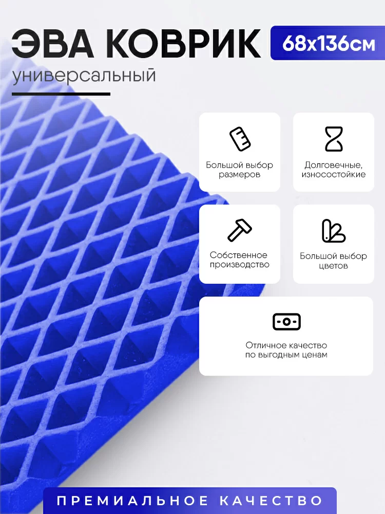 Приобретая ЭВА Коврик синий ромб размер 68х136 в нашей компании, вы получаете гарантированное качество продукции, поддержку на всех этапах и оперативную доставку по всей России.