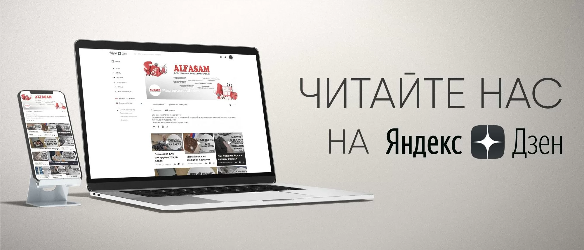 Узнавайте всё самое интересное из жизни мастерской ALFASAM на Яндекс.Дзен